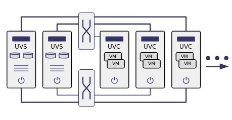 Bei OSL UVE als hyperkonvergentem System sind Design und tägliche Handhabung konsequent softwarezentriert, d. h. im Alltagsbetrieb muß sich der Administrator nicht mehr mit Hardwarekonfigurationen (etwa Speichersysteme, Switches usw.) beschäftigen. Anders als die bekannten HCI-Lösungen aus Übersee, die allesamt ein Brick-Layout besitzen, hat OSL UVE ein Client-Server-Design. Dies ermöglicht kürzeste I/O-Pfade, schnelle IPC im Server anstatt aufwendiger Inter-Node-Kommunikation beim Brick-Design, einfache und robuste Abläufe und vieles mehr. Die theoretisch unbegrenzte Skalierbarkeit der Brick-Konzepte wird zumeist durch praktische Hindernisse aufgehoben. Sie ist daneben für wohl fast alle Anwender in Deutschland / Europa ohne Belang. Am Ende ist OSL UVE in der Praxis höher skalierbar und punktet mit spürbaren Vorteilen.